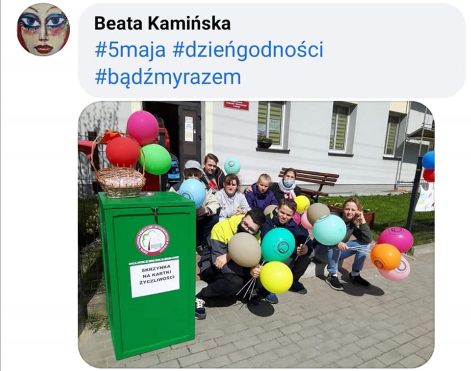 „Zrób zdjęcie…” – dziękujemy za udział w akcji :) 5 maja 20215 maja 2021 Dziękujemy za tak liczny udział w akcji „Zrób zdjęcie…”, za okazanie akceptacji i tolerancji wobec Osób z niepełnosprawnością intelektualną! ◄ 1 2 3 4 ►